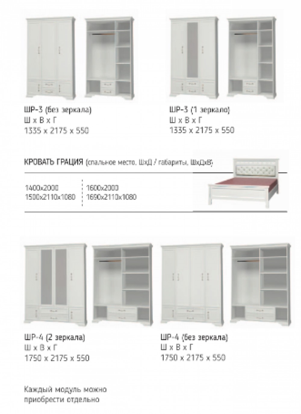 Артикул: A25014Шкаф 1700 мм ШР-4 без зерк.. ГРАЦИЯ (лак) Белый/Белый (БМ)