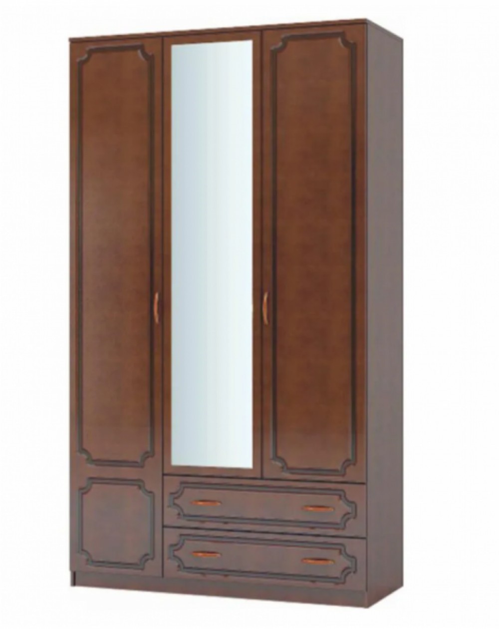 Шкаф 1300 мм ШР-3 с 1 зерк. ЛАК Орех Тёмный (БМ)