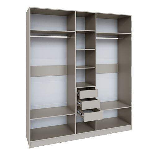 Шкаф Мадрид 2000 мм с зеркалом и ящиками, кашемир (Текс)