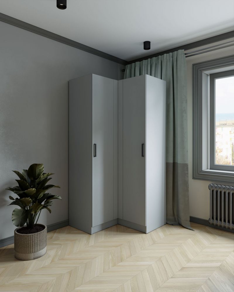 Артикул: A65638Шкаф угловой Ларс (угол прямой), Серый камень/Графит (Микон)