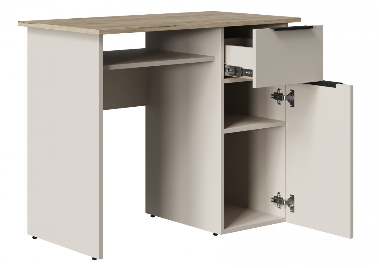 Тумба с ящиком на шариковых направляющих (полное выдвижение, 400 мм) и отсеком со створкой.
